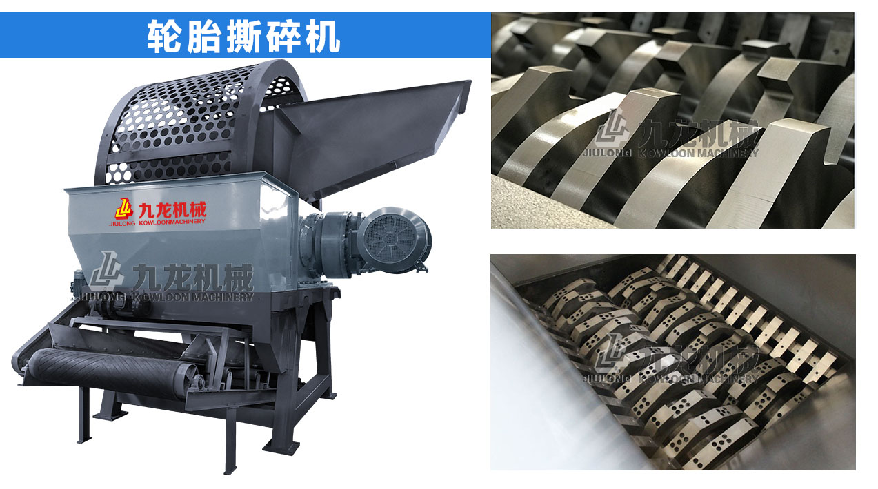 3.輪胎撕碎機:將輪胎撕碎成膠片(50mm-150mm)。